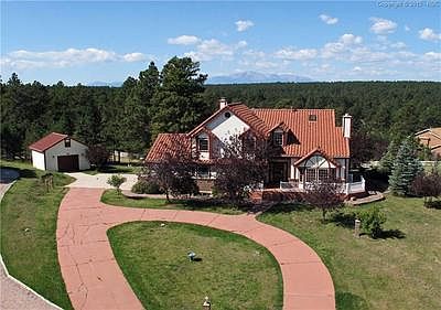 Stunning stucco & tiled roof 2 story nestled among the trees. Brand new vinyl fencing enclosed this retreat of meadows and full front range mountain views. 3 Car Attached garage plus bonus 4th garage and RV Parking. Open concept home with updated kitchen featuring granite kitchen. Fully finished garden level basement. Luxury master retreat including jetted master tub, domestic well and horses allowed.