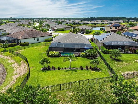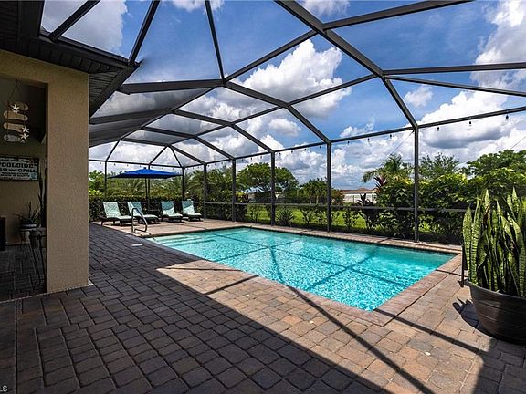 GREAT BUYING OPPORTUNITY!! STUNNING POOL RESIDENCE W/ FULLY FENCED-IN BACKYARD (IDEAL FOR DOGS) AND GORGEOUS LAKE + NATURE VIEWS! BEAUTIFUL SUMMERVILLE MODEL BY LENNAR W/3-CAR GARAGE AND A LONG LIST OF UPGRADES INCL. NEW A/C (2024)! Furniture is negotiable. This gem is ready for you to move-in + enjoy your very own piece of SW Florida paradise! Welcome to this well-maintained, modern smart home, feat. an inviting foyer w/double glass insert entry doors for lots of natural light, 3 bedrooms, 3 bathrooms, an extra den/office, a 3-car garage and a long paver driveway, located on an oversized lake view lot in the popular Portico community in Fort Myers! GREAT BUYING OPPORTUNITY, builder is sold out of 3-car garage homes in Portico! OPEN FLOOR PLAN, perfect for family living and entertaining. The heart of the home is an expansive great room w/tall glass sliding doors, leading to the covered lanai area. The living room w tray ceiling seamlessly connects with the spacious formal dining area and the gourmet kitchen, which features white cabinets, granite countertops, a large island, upgraded stainless-steel appliances + a walk-in pantry. The luxurious owner’s suite has tray ceiling, sliding doors for direct lanai access, two large walk-in closets and an ensuite bathroom w/dual vanities, soaking tub and walk-in shower. Two additional bedrooms, each with own private bathroom, are generously sized, offering flexibility for guests, or a hobby room. Especially if you’re working from home, you will love the separate den w/French Doors. A laundry room w/sink is also located inside the residence, for your convenience. Outdoor living is a delight in this home, with a spacious covered lanai area that overlooks the extended, fully screened-in pool deck and your beautiful, HEATED POOL! Enjoy magic sunrises and swimming + splashing fun all year round in your new private outdoor oasis! This amazing property has MANY FURTHER VALUABLE UPGRADES, which are YOUR GAIN! Those Upgrades include a professionally installed aluminum fence all around the backyard, custom closet systems throughout, NEW A/C (2024), NEW washer + dryer, NEW dishwasher, a custom entertainment wall/center in the living room, upgraded carpet in bedrooms + den, upgraded interior paint, upscale light fixtures + multiple designer ceiling fans w/lights (incl. lanai), garage w/epoxy floor + built-in storage, additional landscaping + more. Start packing and get ready to enjoy a truly laid-back lifestyle in your new pool home in sunny SW Florida! NO FLOOD INSURANCE REQUIRED! PORTICO is a highly sought-after access-controlled community w/Low HOA fees. Residents enjoy resort-style amenities, including a clubhouse, community pool, gym, yoga/exercise room, tennis, pickleball, basketball + play area. Pets, Fences & LSVs permitted! Great location, short drive to I-75, shopping, dining & more!