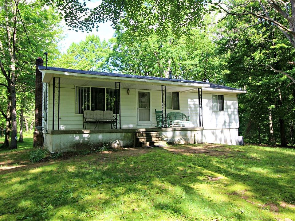 Your Up North wooded 10.9 acres. Cottage style home has complete walkout lower level with kitchen, bathroom & rec room. Covered front porch. 2 sheds. 2 car rear entry garage. 2 septic tanks & fields. 1 owner home. Wood furnace backup. Newer roof (10 yrs), furnace (5-6 yrs), hot water heater (5-6 yrs). Old bus will stay with property.