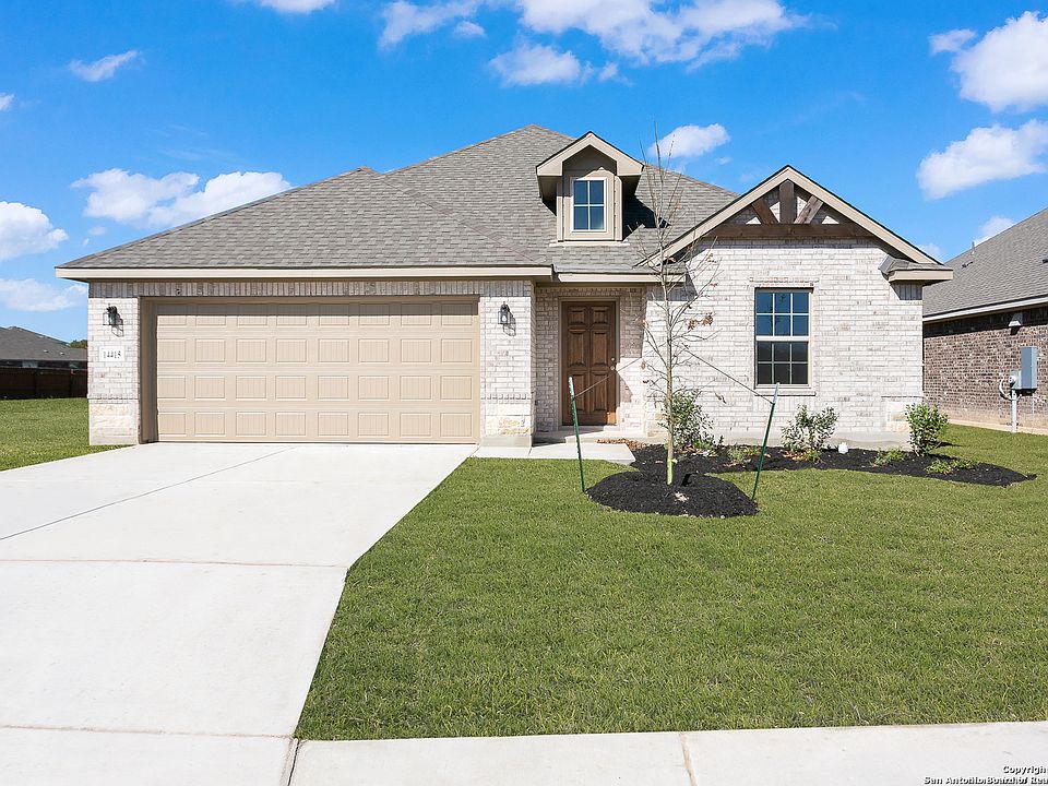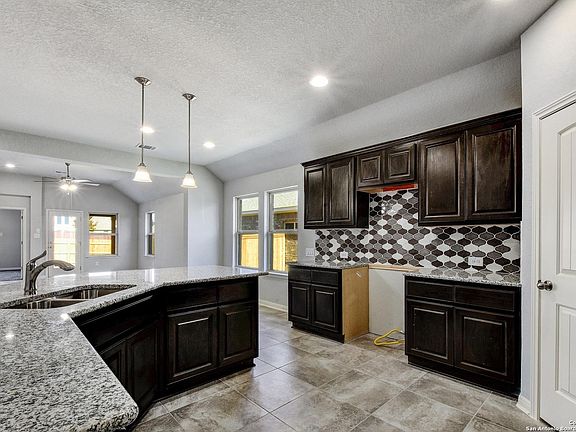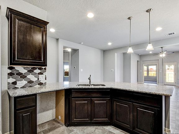 New Construction. Home is move-in ready! Beautiful 1 story home with 3 bedrooms, 2 baths, flex room and open kitchen. All stainless steel appliances with gas range. Covered patio, 2 car garage, ceramics tile throughout living areas, vaulted ceilings, separate tub/shower in master, full yard landscaping with irrigation system, granite counters and 42" tall cabinets with crown molding in kitchen.