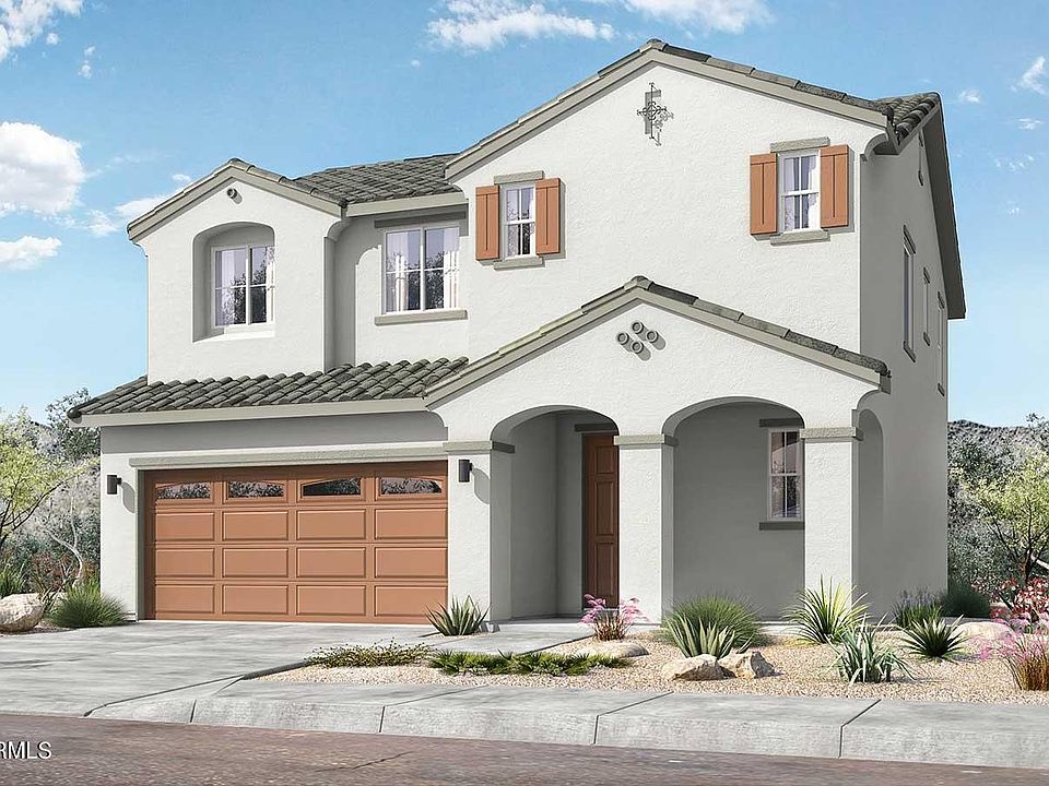 MLS#6698220 August Completion! Prepare to be captivated by Plan 35R3 at Rio Vista in Rancho Mercado, where the charm begins the moment you step onto the front porch and enter the inviting foyer! The heart of this home welcomes you with a spacious gathering room that seamlessly connects to the dining area and a warm kitchen featuring a central island, pantry, and ample counter space. Entertain or simply unwind on the covered back patio, perfect for al fresco dining or quality family time. Upstairs, retreat to the owner's suite boasting a generous walk-in closet, double vanity, and luxurious walk-in super shower. Completing the second floor are three additional bedrooms sharing a full bath, along with a convenient laundry room. Structural options include: paver front porch, soft water loop, 8' interior doors and alternative AC location with gate