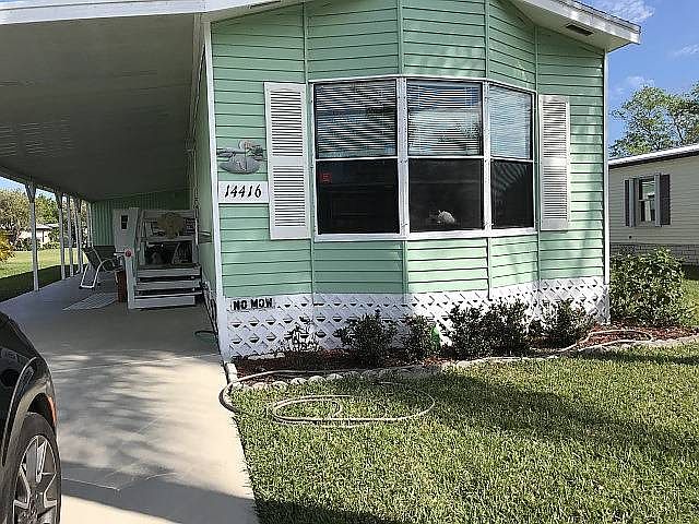 This is a wonderfully painted inside and out two bedroom 2 bath home. Partially furnished and all appliances are staying. Master bedroom has a good size closet and an en suite with a walk in shower.Second bedroom is in the front of the home with its own large closet.Florida room has nice glass windows, window a/c and shades. Big back yard And a small covered patio area to sit and watch the birds with a street view of the lake. Kitchen has plenty of storage within its nice white cabinets. The shop can be used for storage, hobbies or turning it in to a man cave, she shed or Storing a golf cart. Washer, Dryer, Refrigerator and AC are only 2 years old. Dishwasher is 2 months old and Water Heater is only 1.5 years old. Roof replaced in 2005. Will consider holding a small mortgage.