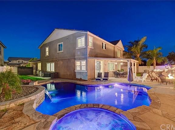 IF YOURE LUCKY ENOUGH TO LIVE AT 14417 BADGER LANEYOURE LUCKY ENOUGH! Wow! Welcome Home! This Stunning Eastvale Pool Home is Situated Adjacent to Award-Winning Schools and in a Fantastic Neighborhood. The Gorgeous Curb Appeal Invites You into an Expansive and Generous Over 3500 SQFT of Open Concept Living Space with Five Bedrooms and Three and a Half Baths. Not a Single Detail was Missed by the Current Owner in Design and Decor. Wonderful High Ceilings and Gorgeous Luxury Vinyl Plank Flooring Throughout Take You on a Tour that Seems to Go On and On! The Homes FIRST FLOOR BEDROOM is Huge and is Complimented by an Adjacent Full Bathroom. The Beautifully Appointed Gourmet Kitchen is a Chefs Delight with an Abundance of Quartz Countertops, Upscale Back Splash, Snow-White Shaker Cabinets and Drenched in a Glow of Recessed Lighting. Stoke Up the Fireplace in Your Cozy Family Room which is Immersed in Warm Natural Light from an Abundance of Dual Pane Windows. All Windows in the Home have been Dressed in Plantation Shutters. Four Bedrooms are Upstairs Including an Over-Sized Master Suite. The Master Suite Welcomes You to a Beautiful Retreat Complete with TWO Expansive Walk-In Closets, a Jacuzzi Style Tub, Separate Shower and Dual Sinks. The Home Boasts of an Over-Sized Bonus Room that is a Perfect Home Theatre Room! There is Even a Separate Home Office! Step Outside to the Sprawling Rear Yard and An Entertainers Playground! Perfect for Entertaining Family and Friend, This Oasis Comes Complete with a Refreshing and Sparkling Custom Saltwater Pool with TWO Waterfalls, and a Spa all with an Eye-Catching Pebble Tec Finish and Wireless Controls. There is a Sitting Area that Shades and Cools Your Guests with an Alumawood Patio Cover and Remote Overhead Fans. Your Guests Can Lounge at the Built-In BBQ and Bar/Fire Feature that Lights Up Any Conversation! Whether you are Roasting Marshmallows or Sipping a Glass of Your Favorite Wine with Guests, the Firepit Invites Warmth and Lots of Memories. An Indoor Upstairs Laundry/Utility Room, Low Energy Costs via the Homes Solar System, and a Finished Garage Space with Coated Epoxy Floors Completes the Most Discerning Dream Home Check-List! Close to Restaurants, Shopping and Grocery Stores. Opportunity is Knocking for the Lucky Winner of this Amazing Home!