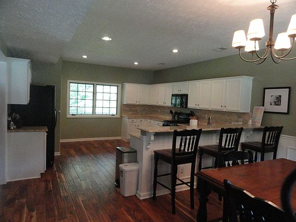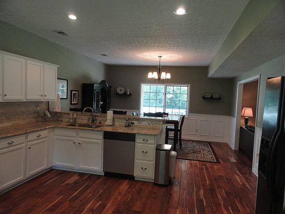 The house features a large kitchen and dining area, open living room and half bath. Step out from living room onto the wrap around deck that overlooks large one acre lot. Third level has master bedroom, bath and large walk-in closet, second bedroom, full bath and play area. The fourth level has a recently finished third bedroom, office and an additional bonus room. The house has tobacco road teak hardwood floors (throughout second level) and granite counter tops. The lower level was recently finished with a family room and has an attached one car garage. Private and peaceful.