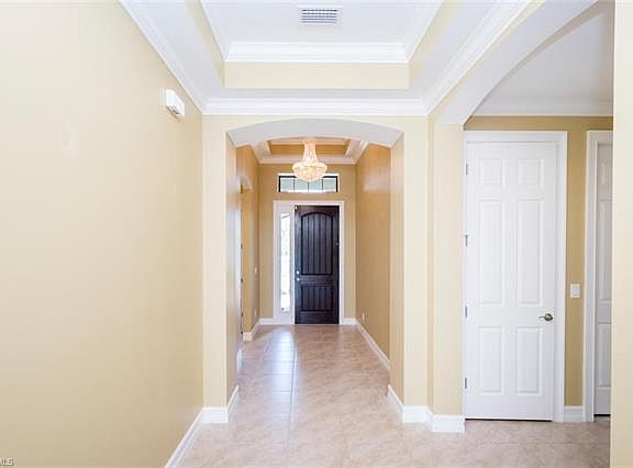 Brand NEW Gated Community Located in an Outstanding North Naples Location! A-rated schools Gulf Coast HS Oakridge Middle!Single Family Pool Home built in 2017 with Fabulous Lake Views Open Floor Plan, 3 Bedrooms plus Office/Den with French doors, 2 Baths, Over Sized 2 Car Garage. Tranquil screened in Lanai and Pool with a Wet Bar and Custom Cabinets. Upgrades throughout home like 42 inch Wood Cabinets with Granite tops, Tiled throughout main living areas, and carpet in bedrooms. Superior Master Suite Bathroom with walk-in shower a fabulous Spa like soaking tub/double sinks Pool, Landscaping and Irrigation included. Minutes to the beach shopping, airports and so much more #Arthrex #ASIG #Hertz #NCH