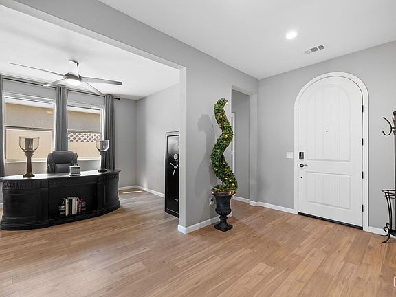 Situated in the prestigious 55 plus gated community of Highgate at Seven Oaks Regents, this exquisite home offers the perfect blend of luxury and functionality. Boasting a bright and airy open floor plan, this 2-bedroom, 2-bathroom home with an office/den is designed to maximize space and natural light. The split-wing layout ensures privacy, with the master suite tucked away for peaceful relaxation. The gourmet kitchen flows seamlessly into the spacious living and dining areas, ideal for entertaining guests. Step outside to enjoy the extended patio and fully landscaped yard, offering a serene outdoor retreat. Located on a quiet cul-de-sac lot, this home combines privacy with convenience in one of the most desirable communities in the area. The active community is so vast, you will rarely need to leave the community for entertainment. This home is an absolute must-see for those seeking a sophisticated lifestyle.