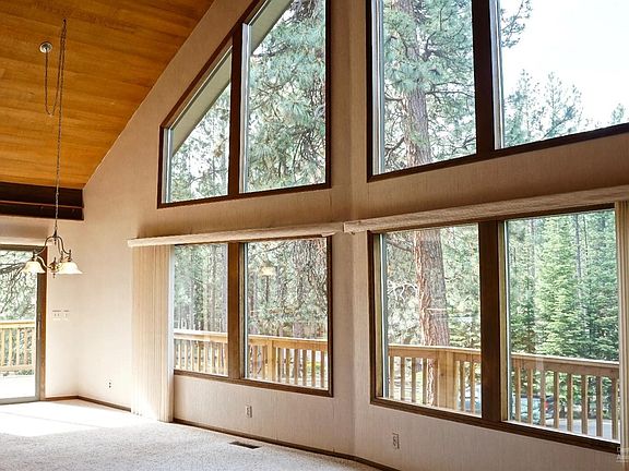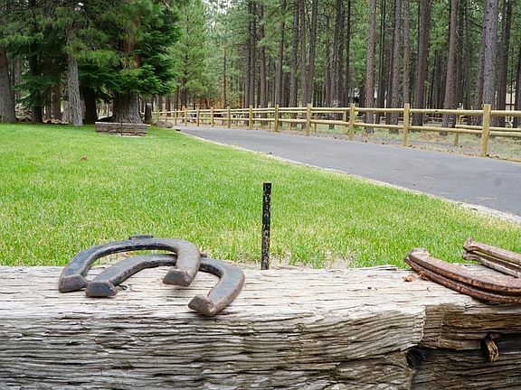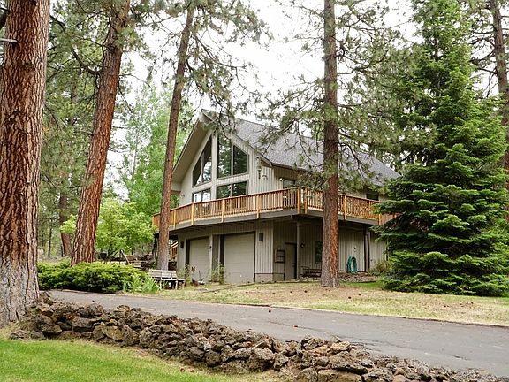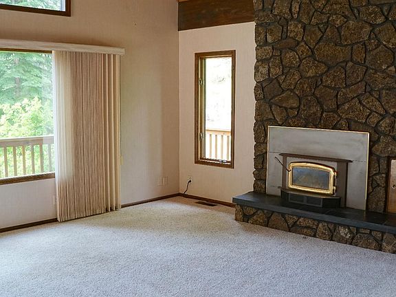 Very private one of a kind, end of the road, quiet setting. Chalet style home on 1+ acre bordered by Nat'l Forest. 2 master suites, plus 1 additional room, living room, dining area, kitchen, 3 baths and large loft for family room or another bedroom. Deck surrounding the house has been repaired and will be refinished. Over sized 2 car garage, water feature, circular asphalt drive, RV parking with elec., dog run, partially fenced and horses allowed.