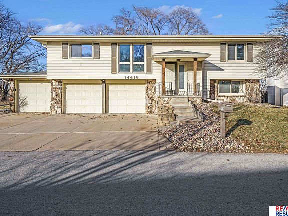 PRE-INSPECTED! This gorgeous south-facing 3 bedroom, 2.5 bath home is situated in the quiet Walnut Grove neighborhood with a great location with easy access to shopping & restaurants! Convenient Millard location right next to the elementary school, hop on the walking path through the neighborhood from your front yard! Discover a spacious open main floor, soaring ceilings & tons of natural light! With its ***FOUR CAR DREAM GARAGE*** with work benches and storage galore, you’ll have plenty of space for cars and tools! Lots of updates here including vinyl windows and newer HVAC. The kitchen is perfect for entertaining with its open area, portable island, newer appliances & refreshed cabinets! All kitchen appliances stay. This home sits up high in the neighborhood and offers a fabulous view from the deck! The Primary ensuite features 2 closets, a full bathroom & access to the large deck. Large bedrooms and lots of closet space. All measurements approx.