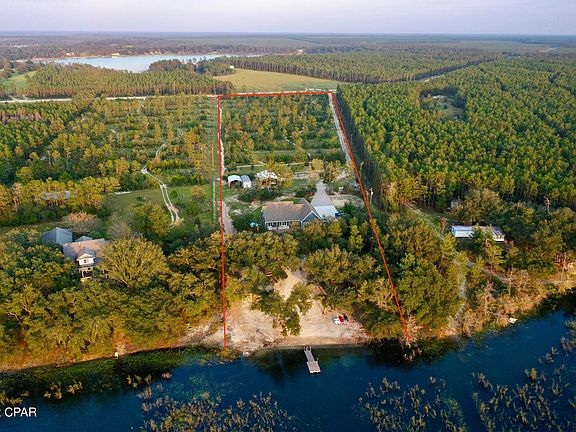 Must see Lakefront Paradise on Big Island Pond just N of Panama City. Beautiful custom 2100 sf home on 10 acres of land, abundant wildlife, and quiet country living. Located less than 30 minutes from ECP airport, and less than 30 miles from PC and PCB. Enjoy beautiful sunsets, numerous boating and water sports on the large private lake while also spending time on your private beautiful sandy beach and floating dock. Property also features a shop, carport, and large pole barn with connected concrete slab, 50 amp RV hookup, an outdoor bath house, large outdoor decks, a bocce ball court, and private boat ramp. Truly a one of a kind lakefront paradise. Great for weekend getaway, family or business retreat, or full time dwelling. Make an appointment to see this remarkable property today.