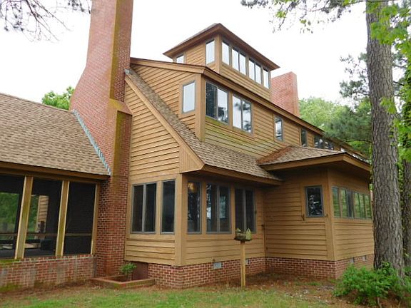 Beautiful, geothermal, cedar, waterfront home with 5 bedrooms (1 master down stairs) just minutes from Onancock, shopping, restaurants, marina, boat launch, galleries and brand new hospital. Each bedroom has it's own bathroom. Kitchen fully loaded. Washer, dryer,sink and freezer in utility room. House has a large 3 garage/shop, (not all available) dock, sandy beach and a perfectly charming 3rd floor office enclosed with windows. Pets welcome with interview and refundable pet deposit. Lovely, long driveway weaves through tranquil woods. Very private. Would prefer to rent for 1 year at a time but will consider all requests. Yard must be maintained by tenants. House may be listed for sale after 1 year.