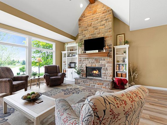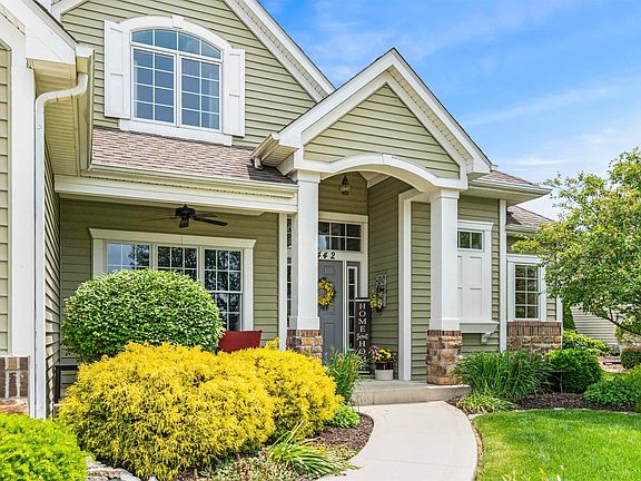 EXCEPTIONAL WATERFRONT HOME ON POND! Solid, quality craftsmanship by Windsor Homes shines throughout this stunning residence, perfectly situated with breathtaking pond views.This home is the perfect blend of functionality, luxury, and charm! Sooo many features to appreciate! Highlights Include: An Expansive Back Patio that showcases beautifully stamped concrete, complete with a built-in fire pit & graceful steps that lead down to a meticulously manicured yard, where lush, vib rant landscaping surrounds the home * SOARING CEILINGS in the Great Room featuring a Massive Stone Fireplace w/gas log and a Wall of Windows overlooking the serene pond * Fabulous Kitchen w/an abundance of rich solid POPLAR WOOD CABINETRY by Zehr, Expansive KITCHEN ISLAND with seating for 3 + BAR SEATING for 4 from Great Room, Dining Area offers a 180-degree water view–perfect for entertaining!! MAIN LEVEL PRIMARY SUITE w/dual sinks, FULL TILE SHOWER & Walk-In Closet * Main Level Den or Formal Dining Room – flexible layout to fit your lifestyle * FINISHED BASEMENT w/ 9’ ceilings * Family Room / Rec Room * Kitchenette w/full-size frig * Projector & mounted screen * Full bath * 5th Bedroom (non-egress window). Solid 2-Panel Wood Doors throughout. Upstairs you'll find 3 Comfortably-Sized Bedrooms featuring: Cathedral Ceiling in Bedroom 2, plus a bonus hideout/playroom space * Jack & Jill Bathroom between secondary bedrooms * Walk-In Attic Access from the 2nd floor * Convenient Laundry Chute * Oversized 3-Car Garage featuring 4 built-in lockers and pull-out storage containers. Honestly...too much to mention--this is a MUST SEE! Don’t miss your chance to own a piece of waterfront paradise!!