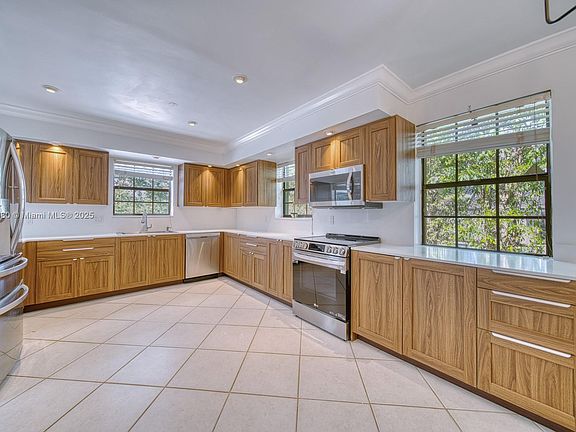 Located in the prestigious, guard-gated community of Gables by the Sea, this beautifully updated single-family home offers an effortless lifestyle surrounded by lush tropical landscapes and waterfront views. The grand main living area is perfect for entertaining, complemented by a separate kitchen with a breakfast nook and modern, high-end appliances. All bedrooms are conveniently situated on the same level, offering an ideal, accessible layout for family living. Step outside to a spacious patio with a large private pool overlooking a serene waterway (no open bay access), creating a perfect backdrop for relaxing or entertaining. This is elevated living in one of Coral Gables' most exclusive enclaves, ready to be enjoyed immediately.
