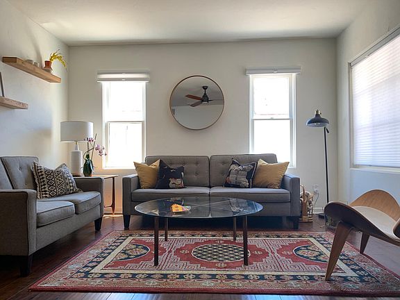 Welcome home! This recently updated, spacious 3-bedroom 2-bathroom bungalow has TONS of built-in storage, a functional floor plan, and hard-to-find open layout. Tile and wood flooring throughout, with spacious carpeted bedrooms. Seamless large master bedroom and en-suite bathroom addition. Enjoy the Frigidaire stainless-steel appliances and new indoor washer/dryer. Kitchen comes complete with modern granite counter-tops, gas range, and subway tile back splash. Luxurious professionally designed outdoor living space with modern gas fireplace for resort-style living. Outdoor storage shed and 2-car driveway. Perfectly located in the highly desirable Coronado neighborhood and just steps from Coronado Park, cafes, and restaurants. Landscaping included. Comes unfurnished.