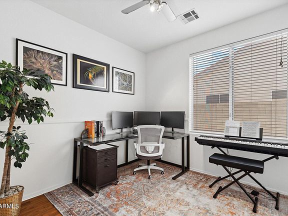 Oasis private oversized yard with sparkling pool, water feature and large grass area. This 3 bed/ 2 bath home is a prime Chandler location to major employers and easy freeway access. A rated Chandler schools and a beautiful community with parks and play areas. Update color palette, wood floors and vaulted ceilings. Eat in kitchen with tons of storage. Dual sinks in the master. 2 car garage, and extra storage in the side yard with an RV-style gate and concrete pad.