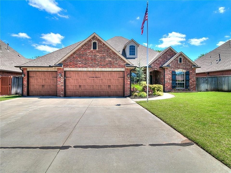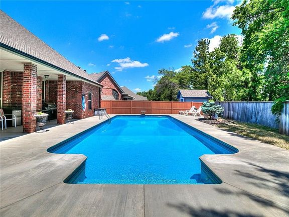 BUILDER IS SELLING HIS PERSONAL HOME & giving a $3,000 paint allowance,5 beds or 4 beds & study, 3.5 baths,3 car garage, saltwater pool with heater, upgrades include:security cameras' with app for smart phone,programable thermostat with app for smart phone upgraded insulation, wood shutters in front window, wood blinds throughout, hand scraped wood floors in living, granite countertops, stone fireplace, storm shelter, sprinkler system, stained woodwork, Carl Albert middle school and Carl Albert High School, located just minutes from Tinker, Boeing, & downtown**A MUST SEE**
