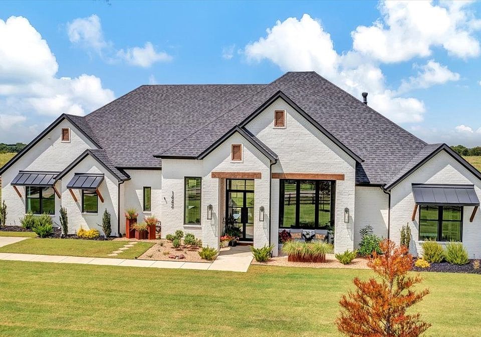 Welcome home to gorgeous Kara Trail! This custom estate is nestled on 1.8 serene acres in beautiful Van Alstyne! A grand approach through verdant tailored landscape to a bold all glass entrance. Upon entry you met with soaring ceilings, designer lighting, walls of windows, modern tones and timeless style. Impressive great room flows effortlessly into chef's kitchen featuring luxury appliances, large island, and custom cabinetry. The impeccably designed prep pantry is a standout feature enhancing both form and functionality. The spacious game room offers an ideal setting for billiards or table games, seamlessly paired with private media suite to create an elite entertainment experience. Also enjoy direct access to outdoor living. Savor a stunning Texas sunset from the covered patio featuring automated shade screens and surround sound for refined comfort and relaxation! The backyard is complete with turfed lawn, pavers, and dog run (with attached wet area or dog room) for carefree elegance! Retreat to primary suite with complete spa inspired bath, TWO custom closets, and secured safe room. This floor plan features four additional bedrooms thoughtfully arranged to provide flexibility for home office, gym, or other personal use. Full feature list available upon request. This one truly has it all, the only thing missing is you!