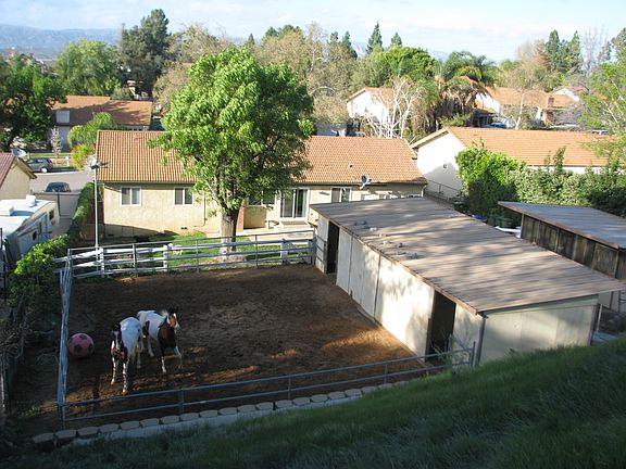 Presto! This Bridle Path Property is People, Pet & Pony Perfection! 4-beds/2-baths, smooth ceilings/canned lighting, newer engineered wood flooring & paint throughout. 4th bedroom is an ideal work-from-home office (off entry). Large bonus room at the back of garage-so many possibilities as art/craft room, man cave, gym?--has separate entrance leaving a fully usable 2-car garage. The Remodeled Kitchen with granite countertops, custom tile, center island, stainless-steel appliances opens onto the family room and lovely updated fireplace. Both Ensuite Master Bath & Secondary Bath are Beautifully remodeled. Extra insulation & a whole house fan to take advantage of the cool summertime evenings! Ample RV access & parking behind a custom wood & wrought iron gate. Every part of this half-acre tiered property has been utilized, from white rail fenced paddock at the top w/views, to hot/cold wash rack on the lower level. In between you will find complete horse facilities including a 5-stall barn (3 w/just-regraded DG runouts), and a hay room w/easy hay delivery access. Drain system ensures year-round access. Super low $60/mo HOA includes miles of riding trails, 7 arenas/ 2 round pens, exclusive access to 1,700 acre Mountain Park. Country living in Simi Valley!