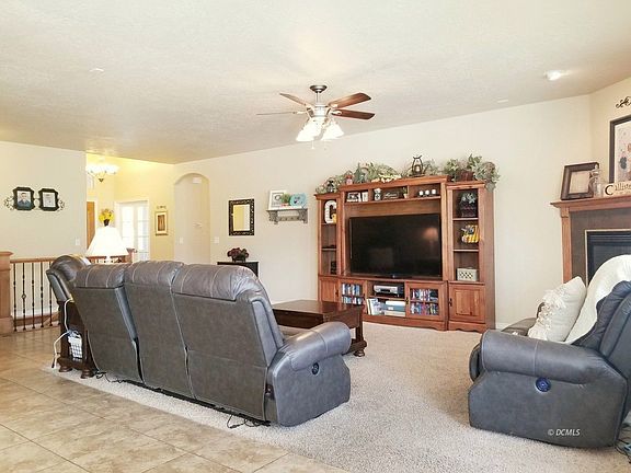 Step into this elegant home located on the 16th Fairway on the Cedar Ridge Golf Course. This 3964 sq ft home was built in 2008 and has 5 beds, 3 full baths, office, entertainment room, 3 car garage, and borders the golf course. You enter the home through a formal entryway with an office off to the side keeping visitors away from the main living area. The inviting living room has a beautiful gas fireplace with large windows that let in the natural light and views outside. The kitchen has Corian counter tops, tile floors, plenty of cabinets and is open to the dining/living room areas. The master bedroom suite has an exterior door to the covered deck. The master bathroom has double sinks, jetted tub, walk in shower and walk in closet. The lower level is made for entertaining with a kitchenette and theater room! 2 bedrooms, full bath and large storage room are located on the lower level. The property is fully fenced with a cinder block wall and landscaped. The backyard is flat/usable and includes a swing set playground and storage shed. Last but not least, the home is equipped with solar panels to reduce the monthly electric costs. Call today for a personal showing.