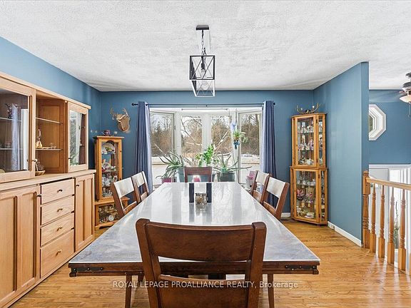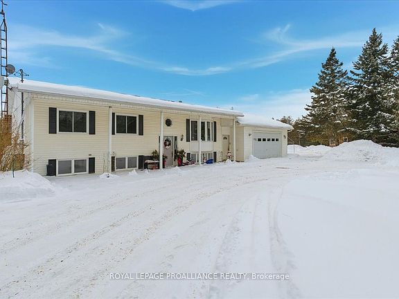 Set on a picturesque country lot, this raised bungalow at 1442 Quin-Mo-Lac Road offers comfortable rural living just outside the town of Tweed. The home features a generous layout with seven bedrooms, making it well-suited for larger families, home-based living, or those seeking extra space. The main living areas are bright and functional, with a formal dining room, a well-equipped kitchen, a cozy living room and bonus indoor man-cave! Heating is provided by propane forced air and 2 wood stoves for flexibility, complemented by a metal roof and concrete foundation. The attached garage adds convenience and ample storage. Outside, enjoy landscaped grounds, established gardens, an above-ground pool (2022), and a covered deck with hot tub (2022). A peaceful creek borders part of the property, enhancing the natural setting.