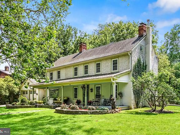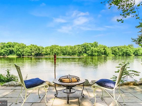 Beautifully restored c.1790 Bucks County farmhouse sits majestically overlooking the Delaware River between the Milford and Frenchtown bridges. This home has been lovingly updated with every convenience, while retaining its history and charm with period details throughout. A field- stone path winds past beautiful stone hardscaping and mature perennial beds to a covered rocking chair front porch with stunning panoramic views of the river. Upon entering notice the abundant natural light, deep-set windows, period hardware, and meticulously restored original random-width pumpkin pine floors that carry through the home. Enjoy cozy evenings in the large and inviting living room with woodburning fireplaces on both ends of the room, one with a stacked stone firebox flanked by period built-in cupboards. Sliding barn doors open into a first floor bedroom with built-in corner cupboard for added flexibility. Step up into the heart of the home to find a gorgeous chef’s kitchen featuring Kitchenaid stainless steel appliances, quartz counters, marble tile backsplash, large center island, white shaker cabinets with soft-close drawers, a pantry with sliding barn doors, and bluestone radiant heat floors. The vaulted and beamed ceiling with antique oak timber trusses, raw timber accents, and undermount and over- mount accent lighting beautifully compliment this incredible space. Sliding glass doors lead out to the fully fenced-in backyard with professional landscaping and outdoor shower. The adjacent dining area has a wall-of-windows framing river views and a patinaed wood-panel accent wall, while the mudroom boasts bluestone floors, a large picture window with window bench, a half bathroom with laundry facilities, and direct access to the two-car attached garage. Pie stairs lead up to the second level where the amazing views continue. The primary bedroom suite has a lovely fireplace, multiple closets, an ensuite bathroom with tile and glass frameless shower. Across the hall is another bedroom with a beautiful ensuite bathroom. Third floor with abundant storage, basement with bulkhead doors, central air. With riparian rights and an expansive blue- stone patio nestled into the bank with unobstructed views, you can make the most of life on the river as you enjoy fishing, swimming, and boating, or just sit back and watch the world float by.