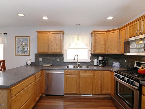 Gorgeous well maintained ranch in the City of Hastings. Home features a spacious 3 bedroom 2.5 bath open floor plan with some updates thatinclude Brazilian Walnut hardwood floors throughout dining and kitchen, tiled entry from garage into laundry ,stainless steel appliances & beautiful landscaping. Outside you will find a paved patio with fire pit and large sitting wall secluded from street, large deck, fenced back yard & dog kennel which also has also served as a RV Pad along side of house. L ot backs up to wooded lot with wildlife