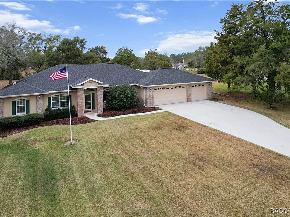 "OPEN HOUSE 12/15/2024 from 11:00-1:00" Welcome to your dream home in highly sought out Hills Countryside Estates in Inverness. Owner is offering buyer $10,000.00 in closing costs or to buy down their interest rate at closing. This stunning property boasts four bedrooms, 2-1/2 baths, a three-car attached garage, and an additional detached garage/workshop on a spacious 1-acre lot. Step inside and be greeted by the luxurious tile flooring throughout, granite countertops, and modern finishes that exude elegance and style. The lighting fixtures, tray ceilings and sliding screen doors to let the soft breeze in are just some of the special touches this home offers. The open concept, split floor plan layout is perfect for entertaining, with a gourmet kitchen that is sure to impress any chef. The real showstopper is the backyard oasis, featuring an inground heated saltwater pool with a soothing waterfall and new travertine tile throughout the screened lanai. The serving window makes it easy for entertaining outside. Imagine spending your days lounging by the pool, soaking up the Florida sun, and enjoying the peaceful surroundings of your own private paradise. Enjoy the gazebo with electric run to it along with 2 additional concrete pads ready for your cornhole game or another one of your favorite games. There is also a 50 amp hook up for your camper right behind the additional detached garage/workshop. The possibilities for this property are endless. Not to mention, this home is equipped with solar panels offering energy efficiency and cost savings to you year round. Don't miss out on this rare opportunity to own a piece of paradise. Schedule a showing today and make this dream home yours! For the 3D tour please copy and paste this link. https://my.matterport.com/show/?m=87BH7pr2fXA