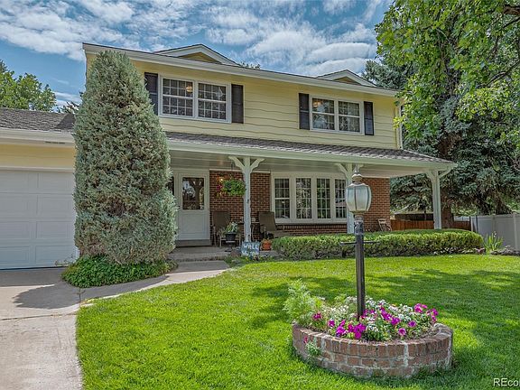 This well maintained home sits on a huge lot at the end of a cul de sac. 4 Bedrooms, 3 bathrooms, finished basement and updates throughout. Kitchen has all stainless steel Kenmore Elite appliances, ambient under counter lighting, new cabinets with custom lighted pantry, eat-in bar, nook and formal dining room. Family room features a wood burning fireplace and sliding door to patio. Gorgeous bay window in the living room! Throughout the home you'll find new interior doors, door hardware, updated bathrooms with granite counter tops, new toilets, updated light fixtures and a central vacuum system. Master bedroom has a private bathroom, 2 closets and 2 windows! 3 more bedrooms upstairs are good sized rooms with large closets. Electronic Schlage Deadbolt lock on front door is wifi and bluetooth capable. Hardwood floors in the entry and kitchen area, luxury carpet and tile flooring in rest of main and upper level. Basement can be used for living room, TV, workout or teen hangout room. Laundry room is large with plenty of storage and rough in for bathroom in the basement. Central A/C unit keeps the home comfortable and a 1 year home warranty for A/C, furnace and kitchen appliances will give you peace of mind. The home is across from a park and has mountain views. Private well water is used for Free exterior water. The large yard has mature trees, sprinkler system, perennial flower beds, prairie grasses, play structure, greenhouse and 2 sheds. Large flagstone patio has built-in gas grill. Enclosed patio with hot tub, 2 new sliding glass doors, swamp cooler and vinyl windows. Just painted exterior includes painted sheds. Updated and expanded electrical box. Only 2 owners, both took great care of this home and property! Desirable Village East neighborhood with no HOA fees & Cherry Creek school district. Central location, close to 9-mile, Utah park, bike paths, Light rail, shopping, DIA, DTC and Downtown. Close to Anschutz Medical Campus including the VA hospital.