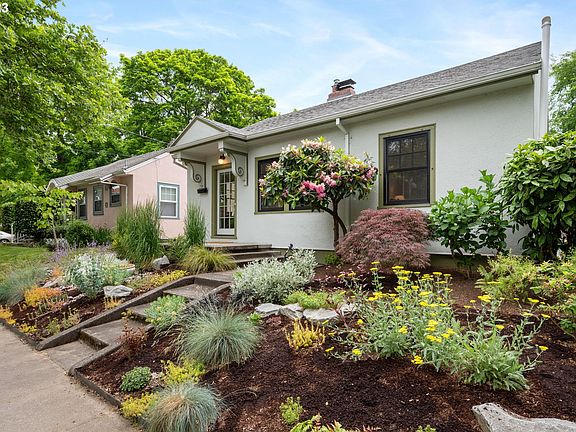 Beautifully situated in the coveted Ladd's Addition Neighborhood, this enchanting bungalow captures the essence of charm and convenience. The main level offers a cozy wood-burning fireplace in the living room, and a modernized kitchen equipped with stainless steel appliances. Additionally, there are two generously sized bedrooms adorned with beautiful hardwood floors, along with an updated bathroom. The unfinished basement, with its high ceilings, presents endless opportunities for customization, allowing you to transform it into the space of your dreams. Additionally, a detached garage serves as an excellent workshop or storage area. Outside, a sun-kissed backyard awaits, complete with a charming patio, meticulously landscaped surroundings, and an outdoor sauna. A true oasis for indulging in summer gatherings and entertainment. Perfectly positioned just a few blocks away from a vibrant array of restaurants, shops, and the bustling activities of Hawthorne Boulevard. Embrace the essence of urban living while relishing the tranquility of this remarkable Ladd's Addition retreat. [Home Energy Score = 4. HES Report at https://rpt.greenbuildingregistry.com/hes/OR10215514]