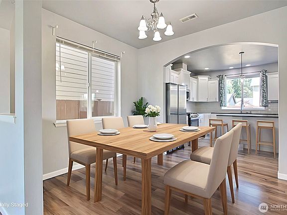 Welcome to this beautiful 4-bed, 2.5 bath home in the desirable Tahoma Terra community! Open-concept layout with main great room plus additional living room, formal dining, vaulted ceilings and gas fireplace. The chef's kitchen features a large island, granite counters, gas range, white cabinetry, subway tile backsplash and walk in pantry. Upstairs, the spacious primary suite offers a 5-piece bath plus a private bonus room - perfect for a home office, gym, nursery, etc. Fully fenced yard, A/C for hot summer days and conveniently located near parks, schools, shopping and a quick drive to JBLM! VA Assumable option!