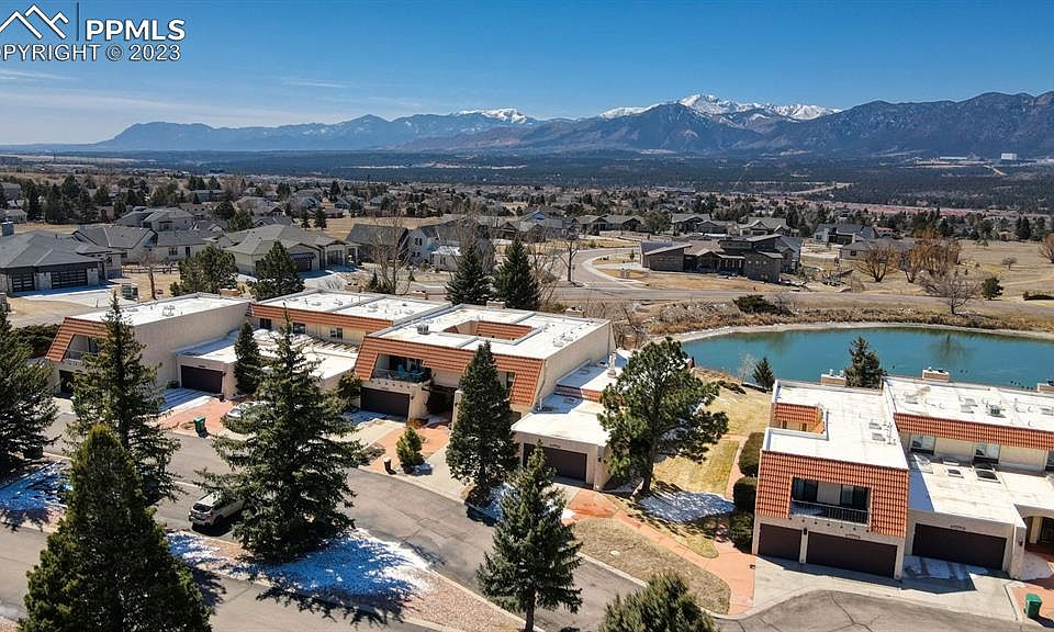 Beautiful spacious townhome backs to a lovely pond where the ducks and geese play with spectacular views of the front range and the Air Force Academy The large, spacious living room with a stone-clad fireplace – show off the amazing views where you can walk out and entertain on one of 4 private patios in this amazing home. The large kitchen has a huge pantry with swing out shelves that quadruple the storage space. You’ll love the separate courtyard in the entrance where you can plant captivating and colorful flowers and unwind in privacy. This lovely townhome has main level living available with a main level full bathroom and private bedroom which is current being used as a 2nd living room. All four bedrooms are generously sized and all with their own private balcony. The home is move in ready complete with Central Ac, an abundance of great storage throughout plus an attached oversized two car garage with added workspace. Don’t miss this highly sought after and rare find in award winning Academy School District 20 just minutes to I-25, the Air Force Academy and great shopping.