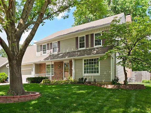 Welcome Home! This well-maintained Lenexa gem showcases hardwood floors, stunning wood details, a brick fireplace, and built-ins in the family room. The eat-in kitchen features a charming bay window, and the main level includes a convenient laundry room and abundant natural light throughout. The primary bedroom offers an extra sitting room or office, dual sinks, and a walk-in closet. This summer, entertain on the patio in the fenced yard. Additional highlights include a storage shed, zoned heating and cooling, and an electronic damper system. Conveniently located near excellent schools, shopping, dining, and highway access, this home is a must-see!