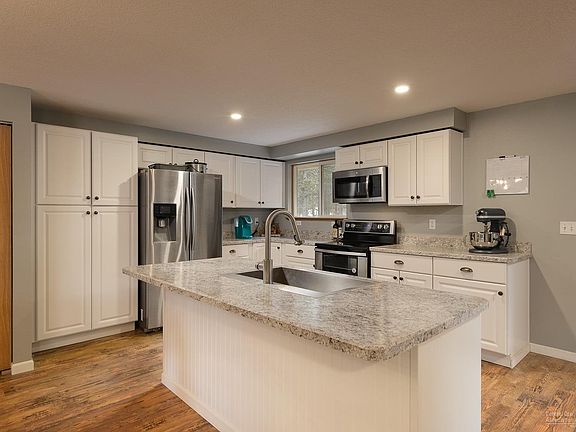 Beautiful stick-built single-level home on a gorgeous fully fenced acre lot. Located 10 minutesfrom La Pine & close to many outdoor recreation possibilities including fishing, boating, & wintersports.The open floor plan has a welcoming atmosphere & the beautiful white kitchen has allstainless-steel appliances. When you open the front door, you are greeted by a stunning vinylwood floor that is throughout the home. Dual gates allow for easy access for your motorhome ortrailer & there is plenty of parking spaces for toys & equipment. There is also a greenhouse tosatisfy your green thumb! The back has an expansive covered porch that looks out to awell-maintained tree-scape with gorgeous sunsets every night. Come look at this property & youwill fall in love with your future home.