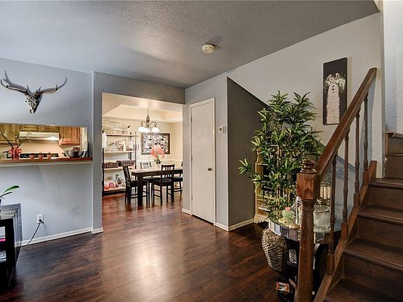 This adorable condo has amazing things to offer! Featuring wood floors throughout the home, its spacious living room boasts a gorgeous fireplace, whilst the kitchen provides a breakfast bar, and eating space with a tray ceiling! Moving along to the to master that features a full bath en suite, as well as a walk-in closet, the secondary bedroom is spacious and provides access to the balcony! This home also offers a fenced in backyard with a covered patio, and inside utility!