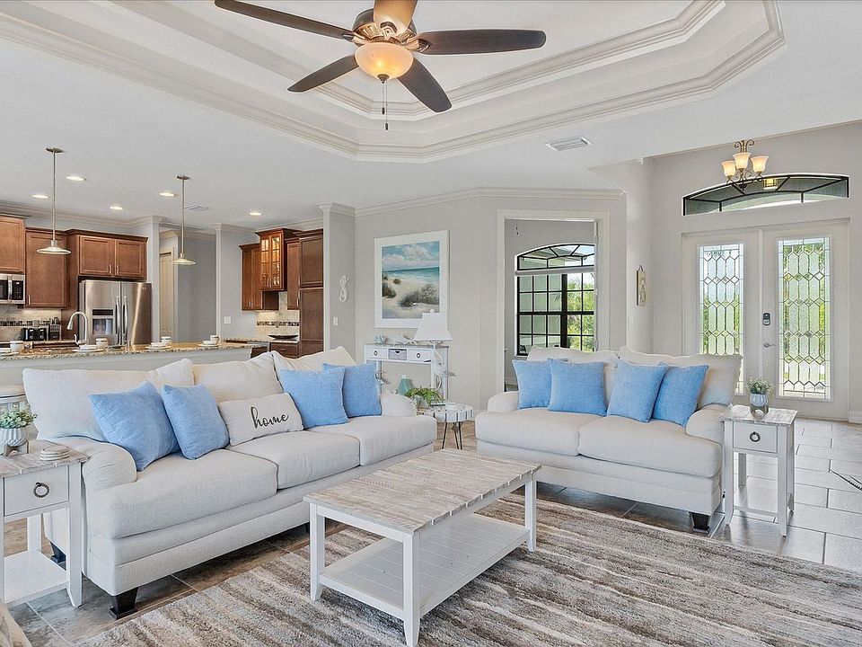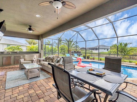 Welcome to this brand new vacation rental home in South Gulf Cove, featuring a private pool and canal access. This 3-bedroom, 2-bathroom single-story home offers a perfect retreat for your South Florida Gulf Coast vacation. With an open split-floorplan, a fully equipped kitchen, and dining for up to six, you'll feel at home. The property is conveniently located just 12 minutes from Boca Grande Beach and offers parking for two cars in the driveway. The home is thoughtfully designed with a fully equipped kitchen and dining area for six. Enjoy the convenience of an office space, bikes, beach supplies, and a new Traeger smoker grill. The property also features a 16x5 foot dock, although boat lift access is not available. Pool heating is available at an additional cost of $200 per week or $500 per month plus tax. The garage offers two bays for car parking, although the owner's vehicle is parked in the third bay. A BBQ is available for complimentary guest use, but guests must clean it upon departure or incur a $56 fee. Situated on Maysville Circle, this home is ideally located near various attractions. It's 14 miles from Chadwick Park at Englewood Beach, 13 miles from Boca Grande, and 15 miles from Englewood Farmers Market. The Publix Supermarket at Gulf Cove is just 5 miles away, and Punta Gorda Airport is 26 miles from the property. The property is smoke-free and pet-free for your comfort. Check-in is seamless with online email access, and 24/7 on-call maintenance is available. Towels and linens are provided, along with complimentary Wi-Fi. Starter welcome packet supplies are included, but any additional supplies are the guest's responsibility. The pool is serviced weekly, and a penalty fee applies if the BBQ is not cleaned upon departure.