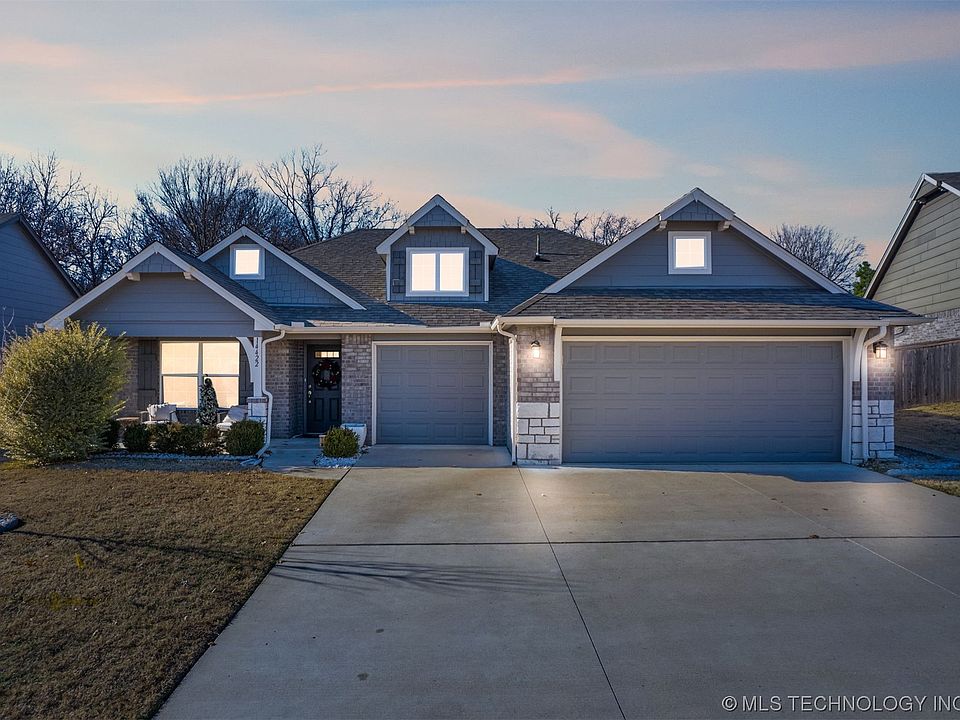 This like-new home in Bixby has a bright open layout, lots of space, and oversized 3 car garage, 4 bedrooms or 3 bedrooms with office, whichever fits your needs best! The very desirable floorpan features open living room to kitchen and dining room, and a master bedroom conveniently tucked away for privacy. All bedrooms are spacious and have good size closets. The 4th bedroom/Office has high end "rustic" sliding doors. Plenty of backyard space for entertaining. All of this backs up to a beautiful greenbelt and is conveniently located across the street from the neighborhood swimming pool and park.