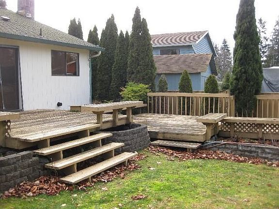 Bank owned price, move in ready. Fairwood rambler you'll be happy you came to see! Large fenced backyard has multi level decks - great for entertaining, raised garden beds and storage shed. In front of this is a 3bedroom, 2bath home with granite tile kitchen counters and hardwood floors. Living room and family room have cathedral ceilings, fans and a fireplace. Master bath has a tub and separate tile shower, granite counters, tile floors and a skylight. Guest bath with granite, tile, and a skylight. Garage door with opener. Mature landscaping all around.