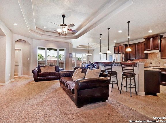 BEAUTIFUL, LIKE NEW HOME READY FOR MOVE IN! THIS SPACIOUS 3 BEDROOM, 2 BATH HOME OFFERS WONDERFUL FEATURES INCLUDING HIGH CEILINGS THROUGHOUT, LARGE CUSTOM ISLAND KITCHEN WITH GRANITE COUNTERS AND STAINLESS STEEL APPLIANCES OPEN THE FAMILY ROOM, MULTIPLE DINING AREAS, AND SEPARATE MASTER RETREAT WITH LUXURIOUS EN-SUITE. RELAX AND ENTERTAIN OUTSIDE UNDER THE COVERED PATIO BACKING UP TO A GREEN BELT PROVIDING PLENTY OF PRIVACY. GREAT NEIGHBORHOOD AMENITIES, LOCATION, AND MANY MORE FEATURES - MUST SEE!