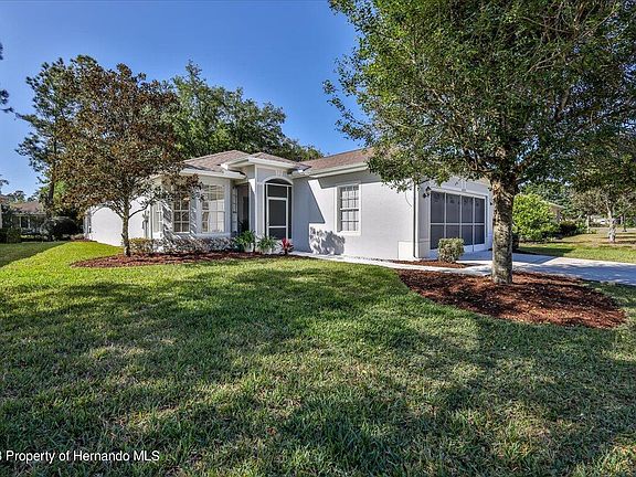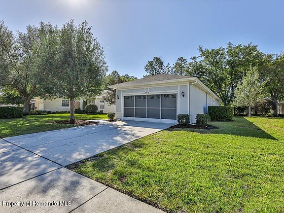 Active with contract accepting backups. If you've been searching for maintenance-free living in an upscale gated golf community, STOP! You've found it here in this lovely Silverthorn villa! Immaculately kept, freshly painted inside and out, and with a new roof in 2019, it's move-in ready and waiting for you. Through the screened front entry, you'll find a sweeping open plan with a spacious great room; high ceilings add a sense of volume throughout the home. Whether you're catching up on episodes of Ted Lasso or playing charades with all your friends, you'll have all the room you need to relax or entertain. Need some flexibility in your floor plan? No problem. There's a bonus room that could easily be a home office, a cozy den, a craft room, home gym, or even a 3rd bedroom. When bellies start to rumble, there's plenty of space in the bright and cheery kitchen to whip up a snack or an entire banquet; it features stone-look laminate counters, a pantry, a breakfast bar, and a large eating nook. When you're ready to retire after a long day, the master bedroom is the perfect spot to unwind. Generously sized, it boasts a huge walk-in closet and private access to the lanai. The ensuite master bath includes a dual sink vanity, garden tub, and separate shower. And don't worry, your family or visitors will be comfortable too in the sizable guest bedroom. Never do laundry in a hot garage again; the indoor laundry room has a sink, plus cabinets and shelving for additional storage. It serves as a transitional entry from the screened 2-car garage with epoxy flooring. Grab your morning coffee or your evening wine and head through the enormous glass sliders in the great room out to the enclosed Florida room. Enjoy the Florida sunshine in comfort, since this room is on the central AC. Your HOA fees include cable and internet, plus landscape maintenance, irrigation maintenance and repairs, and painting. Silverthorn has some stellar amenities, including manned security, a country club, a popular restaurant and bar, a community center, fitness center, library, a jr-Olympic sized community pool, a pro-shop, tennis courts, pickleball courts, and much more. It's centrally located and minutes from the Gulf of Mexico; access to Tampa and the international airport via the Suncoast Parkway is quick and easy. Anderson Snow Park, with its amazing sports complex, and Veterans Memorial Park, with its popular walking trails, are both less than 6 miles away. And don't forget to check out the world-famous mermaids at Weeki Wachee Springs State Park, which also has a canoe/kayak launch; it's only a short trek west. This gem is not going to last, so be sure to see it before it goes!