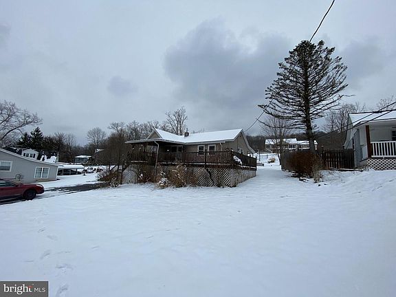 Two bedroom 1 bath bungalow situated on 2 lots. Nice large front deck, This property has great potential for sweat equity. Home has 2 heating sources with Oil and Wood buring FWA furnaces, living room, kitchen with eating space, 2 bedrooms and a full bath. Property being sold in "AS IS" condition.