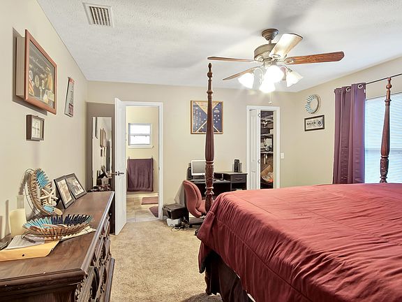 MOTIVATED SELLER!. This custom built home sits on almost one acre that is well maintained and beautifully landscaped. There are two master baths. The first has two vanities, two walk in showers and two walk in closets. The second has a single vanity, walk in shower and a separate closet. A spacious centralized living area connects to open kitchen and dining area. The kitchen has lots of cupboard space and walk in pantry. There is a bar in dining area and full length windows overlook spacious yard, The beautiful Florida room connects to the kitchen/dining area and opens to back yard .There are lemon, kiwi, kumquat, muscadine grape arbors,and satsuma mandarins. There is a dock on Cedar Creek at the rear of the yard, which is fenced. There is a one car garag