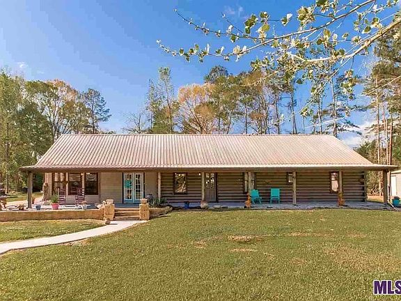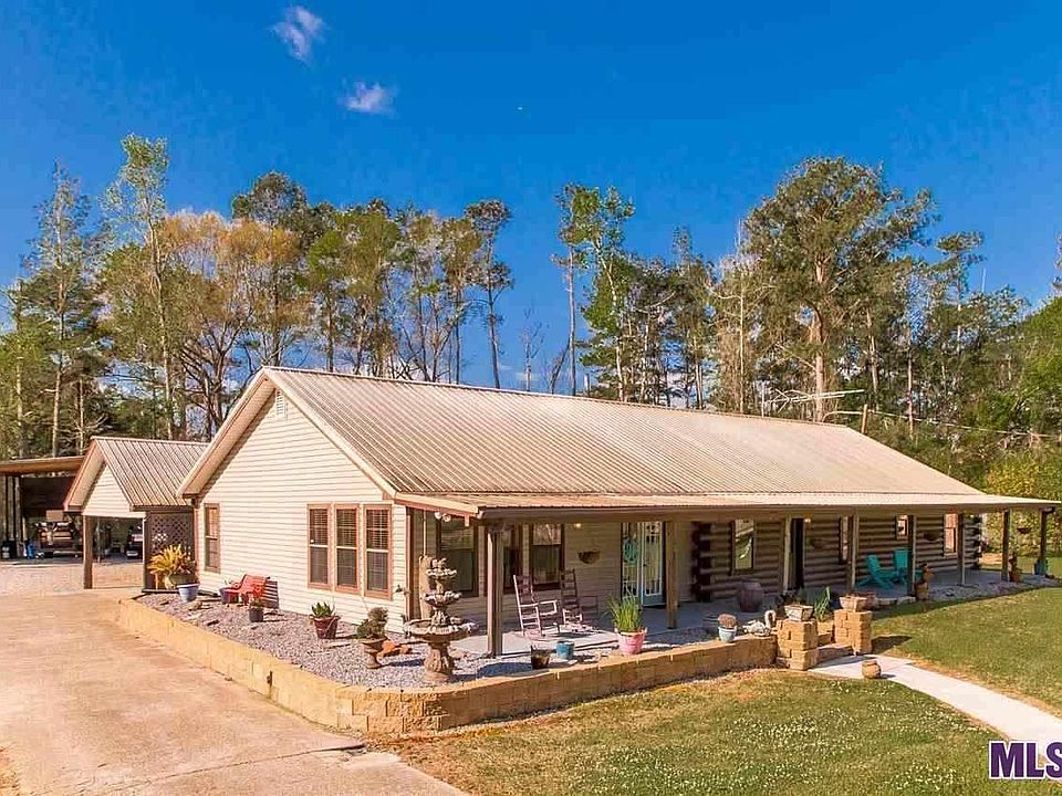 THIS IS COUNTRY LIVING! Are you looking for a spacious 4 bedroom, 2 bath home nestled in a beautiful country setting and on over 1 acre? Look no further, THIS HOME IS IT! As you drive up, you are welcomed by a charming log cabin style home with a large covered porch; great for relaxing and enjoying the beauty of this large property. Inside, you will find so much character and upgrades including shiplap throughout the home, herringbone pattern brick pavers in the kitchen/dining area, wood floors in the living room and hallway, slate tile in the bathrooms, gas stove in the kitchen, LARGE bedrooms and a HUGE master closet! The master bedroom has an en-suite with a separate garden tub and shower. The living room space has a great flow for entertaining and did we mention there's also an office space!? As you step out to the back of the property, you will find a large covered patio that is great for family gatherings, crawfish boils, BBQing and so much more! There is also a second covered patio area overlooking a serene creek. In addition, you will also find two large storage sheds (1 that has 2 bedrooms and 1 bath) and a large covered parking area to store your RV and/or boat. The main home DID NOT FLOOD, but the mother-in-law suite (that was converted into a storage space) received 1.5' of water. It was gutted and treated for mold. With a little TLC, this space can be rented out and produce income or can be used for your out of town guests. Flood insurance in the main home is only $700/yr. and is transferrable! What are you waiting for? Make your appointment to view this home today! Let's get you in this home before the summer so you can host your next summer party!
