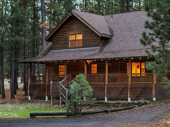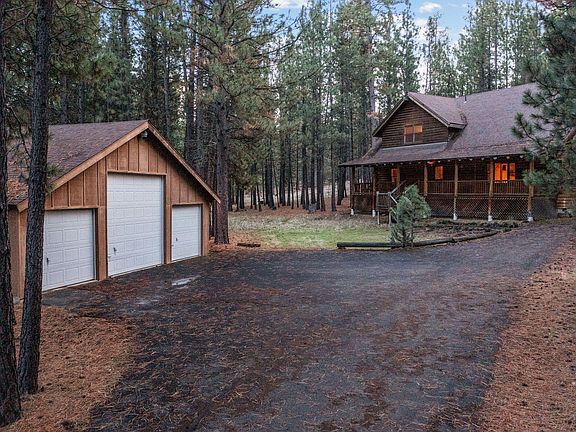 Find peace and quiet in this beautiful log home on nearly an acre nestled among the trees in Sisters Oregon. The Crossroads community is minutes away from Downtown Sisters as well as Black Butte Ranch and surrounded by Deschutes National Forest. Your next adventure is right outside your front door. Both the main living space and the large lofted area enjoy the wonderful vaulted ceiling. The main level Primary bedroom looks out to the covered front porch with wonderful natural light. Upstairs is a large loft area as well as two generous bedrooms, both with high vaulted ceilings and full bath. The nearly 1,225sf shop/garage offers plenty of room for storage, toys or even a large RV with its 14ft center rolled door and 35ft x 14.3ft center bay with RV 120v 30amp outlet. The Crossroads community even allows horses. What else could you ask for? Come make this wonderful log house your home.