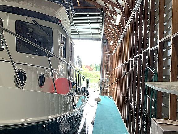 Larson built 70’x26’ boathouse in excellent condition. Boat well is 60’x18’. Walkways on inside about 4’ on each side. Power door with 19’6” clearance.