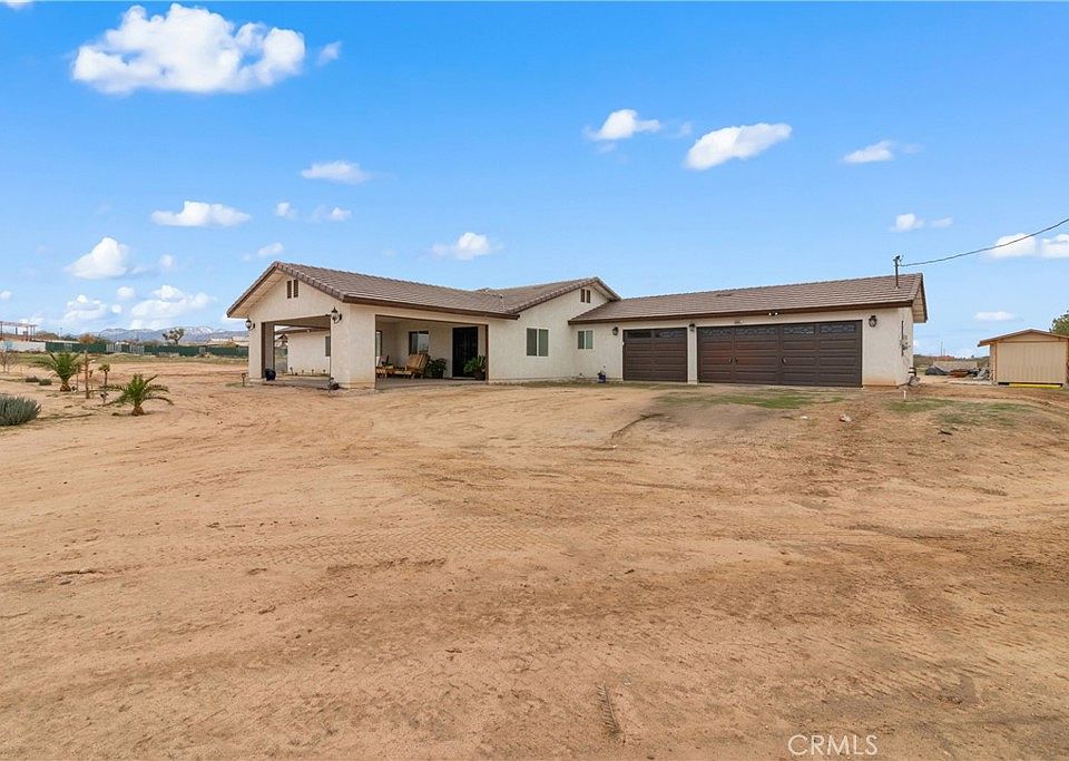 Price Adjustment! Kick off the New Year in style with this 2023 custom-built home featuring 5 bedrooms and 3 full bathrooms, including a master bedroom and a junior master suite. Set on over 2 acres of equestrian property, there’s room to build two more homes and even convert the 3-car garage into an ADU. Enjoy country living with breathtaking mountain views, just a block and a half from Palmdale Road and close to Hwy 395 and I-15. The luxurious home boasts a huge front porch (veranda) that’s perfect for sheltering your car on rainy days. Step inside to an open-concept layout with a spacious living room, beautiful, easy-to-clean flooring, and generously sized bedrooms—each with a queen bed, while the master has a king. The stunning kitchen features a massive granite island, a gorgeous granite buffet for your coffee station, and a wine fridge. Bathrooms offer a luxury hotel vibe, and the backyard is ideal for BBQs and parties with its large patio. You’ll also find a chicken coop (with chickens included) and a horse stable (horse not included). The entire property is fully fenced, and the solar system is already fully paid!