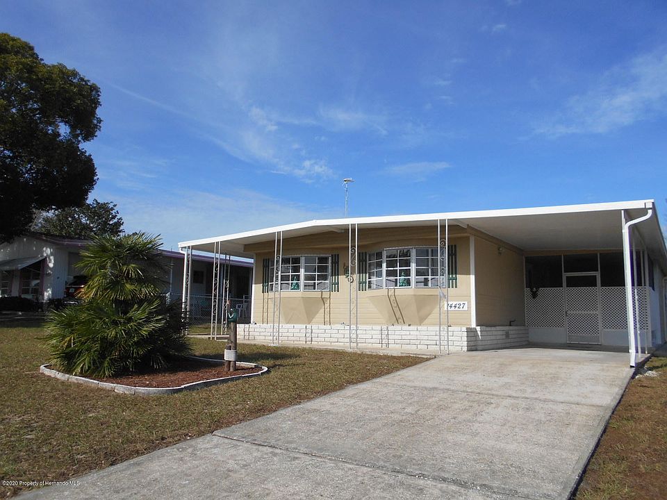 CUTE AS A BUTTON CLOSE TO FRONT GATE FULLY FURNISHED HOME LIGHT AND BRIGHT OPEN FLOOR PLAN. ALL LAMINATED FLOORS THROUGH OUT, BRAND NEW A/C 2020 ROOFOVER, NEWER PAINT INSIDE AND OUTSIDE, NICE SCREEN IN PORCH GREAT FOR A SNOWBIRD OR FAMILY THAT JUST WANTS ENJOY THE FLORIDA LIVING IN A 55 PLUS WHERE YOU OWN YOUR OWN LAND !