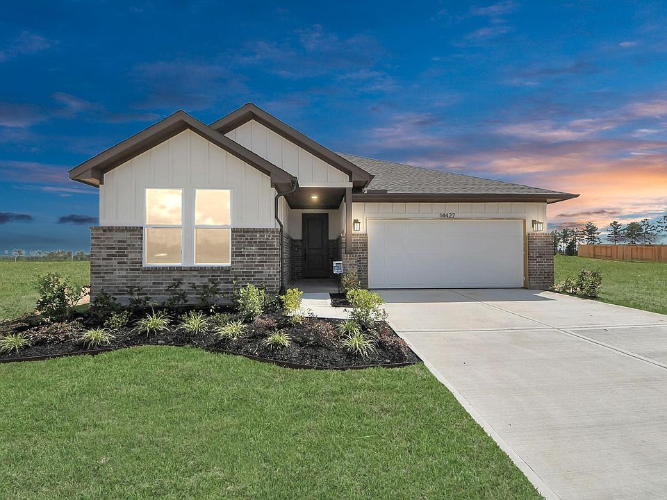 The beautiful 1 story, Levi Floor Plan offers you 3 Bedrooms with 2 Baths, & 2 car attached garage. You will love the openness of the living space with great flow from room to room. The heart of the home is the modern island kitchen, seamlessly flowing into the great room & dining area. The private primary suite includes a luxurious ensuite bath and a walk-in closet, offering a relaxing retreat. This split floor plan offers 2 bedrooms & full bath at the front of the home. Don't miss the covered patio with fenced backyard for entertaining friends and family. Grass front and back is included with a sprinkler system. The Canopies is conveniently located between The Woodlands and Valley Ranch in New Caney. Amenities include swimming pool, splash pad, butterfly area, walking trails. Shopping and Entertainment in the Woodlands or Valley Ranch! and 32 Miles from Houston. Easy Access to I45, I59/69, TX 242, FM 1314, and FM 1485. Don't wait! Call today for your private tour!