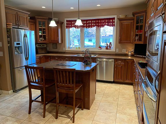 Lovely and unique 1-story rambler with so much new! Walk into the main foyer to find a large kitchen, dining, and sun room addition, with new kitchen in 2011 with soft close cabinets, and kitchen island. Sun room features knotty pine walls, cozy fireplace, and opens to the fully fenced yard with mature landscaping and 8x10 shed. Any hobbyist will love the heated, insulated garage with drain. This space is like having an additional room! Workshop space and partially finished floors, plus its own furnace for temp control. The main floor also includes a formal living room, home office area, and main floor laundry PLUS two bedrooms and a full bath. Downstairs features a third (non-conforming bed), family room, 3/4 bath, and storage. Room for another bedroom - just needs an egress!