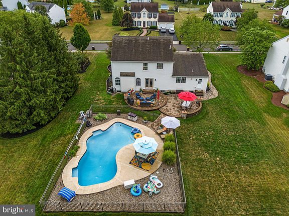 Your visit to this immaculate home begins with a well landscaped front lawn, paver walkway and upgraded entry door. A perfect offering in one of the most convenient neighborhoods in Warwick Township, this home has been beautifully upgraded by the original owners. Gleaming wood floors in the entry foyer, living room and dining room flow into the expanded kitchen featuring custom cabinetry, ceramic tile flooring and upgraded counters. Stainless appliances will please any chef and the amount of counter space will make baking and entertaining a true delight! The kitchen addition adds almost 200 square foot to this home and allows for the expanded island with extra seating, cabinet and prep space. The adjoining family room features a gas fireplace with decorative hearth for those cozy nights when you want to stay in. The mudroom/laundry has a door to the rear yard and lots of cabinet and extra space for those needed towels for outdoor fun. Updated windows throughout the home will allow you to take in the view of the backyard that was designed for play! Step out onto the extensive hardscaped patio with custom sitting walls and lighting. The heated inground pool with natural gas will provide hours of fun and is safely fenced and separated from additional play area. The 3/4 sized pickle ball/sport court is an added plus for all ages and there is still plenty of yard space to enjoy as you wish! The lighting for the pool is spectacular, providing for use well into the evening for the ultimate playground and fun. The second floor of this home features four bedrooms and two full baths. The primary bedroom with vaulted ceiling has a large walk in closet, pocket doors that enter into the updated primary bath and neutral carpet. The other three bedrooms are all a good size and have neutral carpeting and ceiling fans. The hall bath has also been updated. Finish your visit by heading to the lower level of this home with a separate area for gym equipment and a media/billiard area for more fun and entertaining. There is an additional space for utilities and storage. Many improvements to this home include updated roof (2009), kitchen addition/remodel (2009), HVAC (2012), new windows throughout from 2003, 2009  and 2015. Pavers and walkways were installed at the front and rear of the home. Water heater was replaced in 2015. This perfect home has the best location with quick access to Doylestown, Valley Square in Warrington, trains in Doylestown and Warminster and commuting roads. Top notch schools, excellent location and many upgrades for your to enjoy make this home a winner in all areas. Make your appointment quickly.