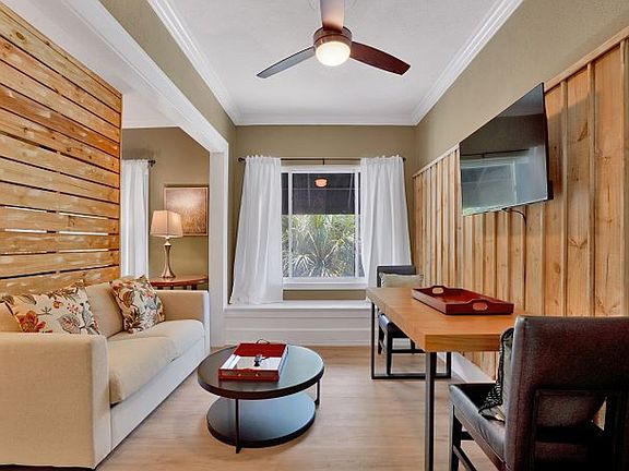Embrace vibrant downtown living with this charming studio flat, located right on Central Avenue in the heart of downtown St. Petersburg! This furnished studio offers 1 bathroom and a versatile layout featuring a divider that separates the living area from the sleeping space, giving you the flexibility to create your ideal setup.
