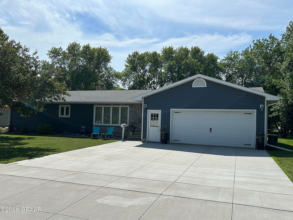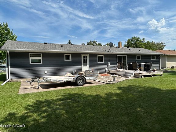 Lots of updates to this large ranch style home. Newer kitchen cabinets with quartz countertop, stainless steel appliances, and vinyl plank flooring. Three bedrooms on main floor and a bedroom in the basement with an egress window. Full and 3/4 bath on main floor with a 3/4 bath in the basement. Large back yard with deck, patio, and a shed. Newer windows, steel siding, shingles, and concrete.
